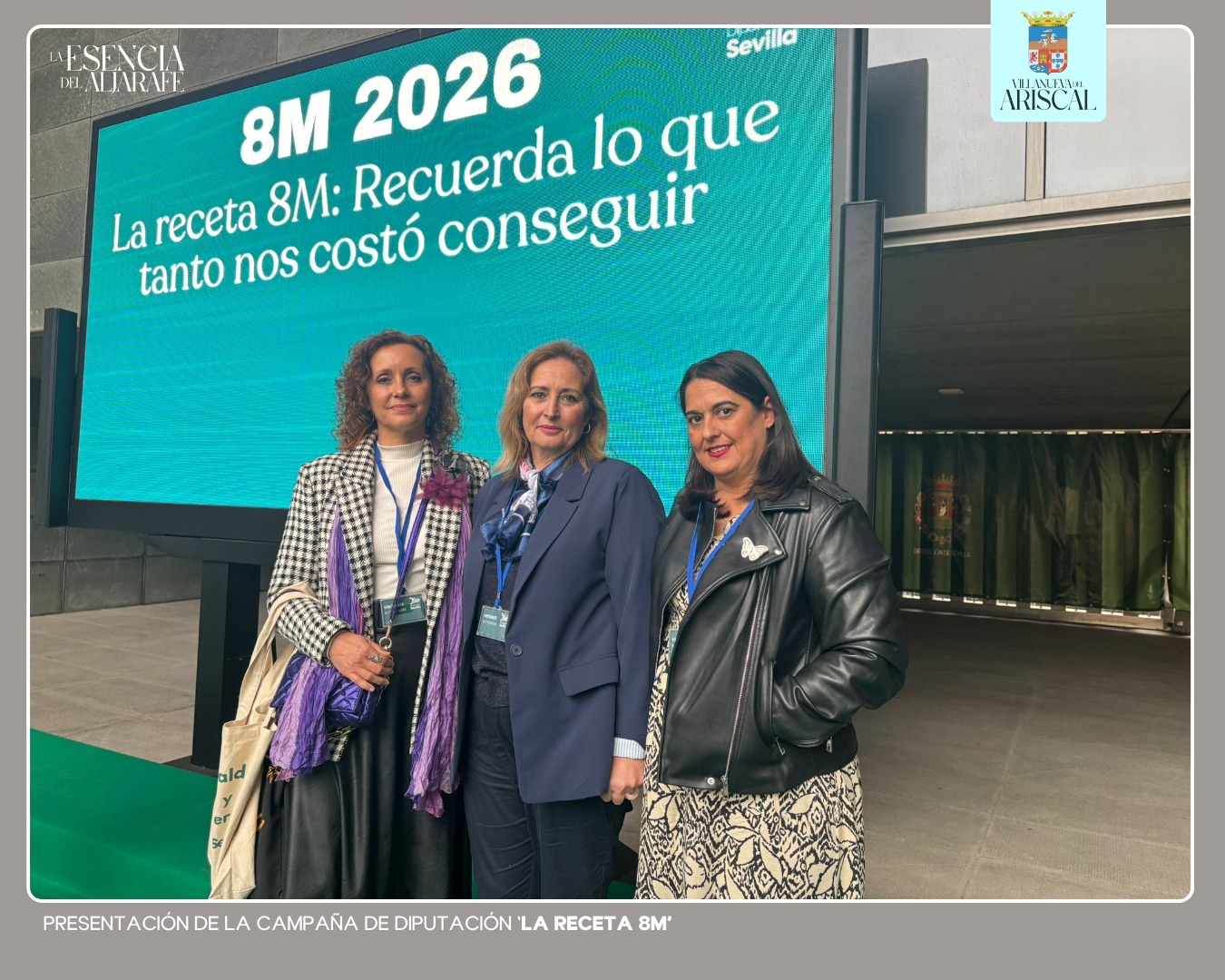 El Ayuntamiento de Villanueva del Ariscal, representado por la concejala de Igualdad, Rocío Escudero, la agente de Igualdad, Ángeles Moreno, y la asesora jurídica, África Arroyo Lora, ha mostrado su apoyo a la campaña promovida por la Diputación de Sevilla con motivo del 8 de marzo, Día Internacional de las Mujeres, asistiendo a la presentación de la misma.