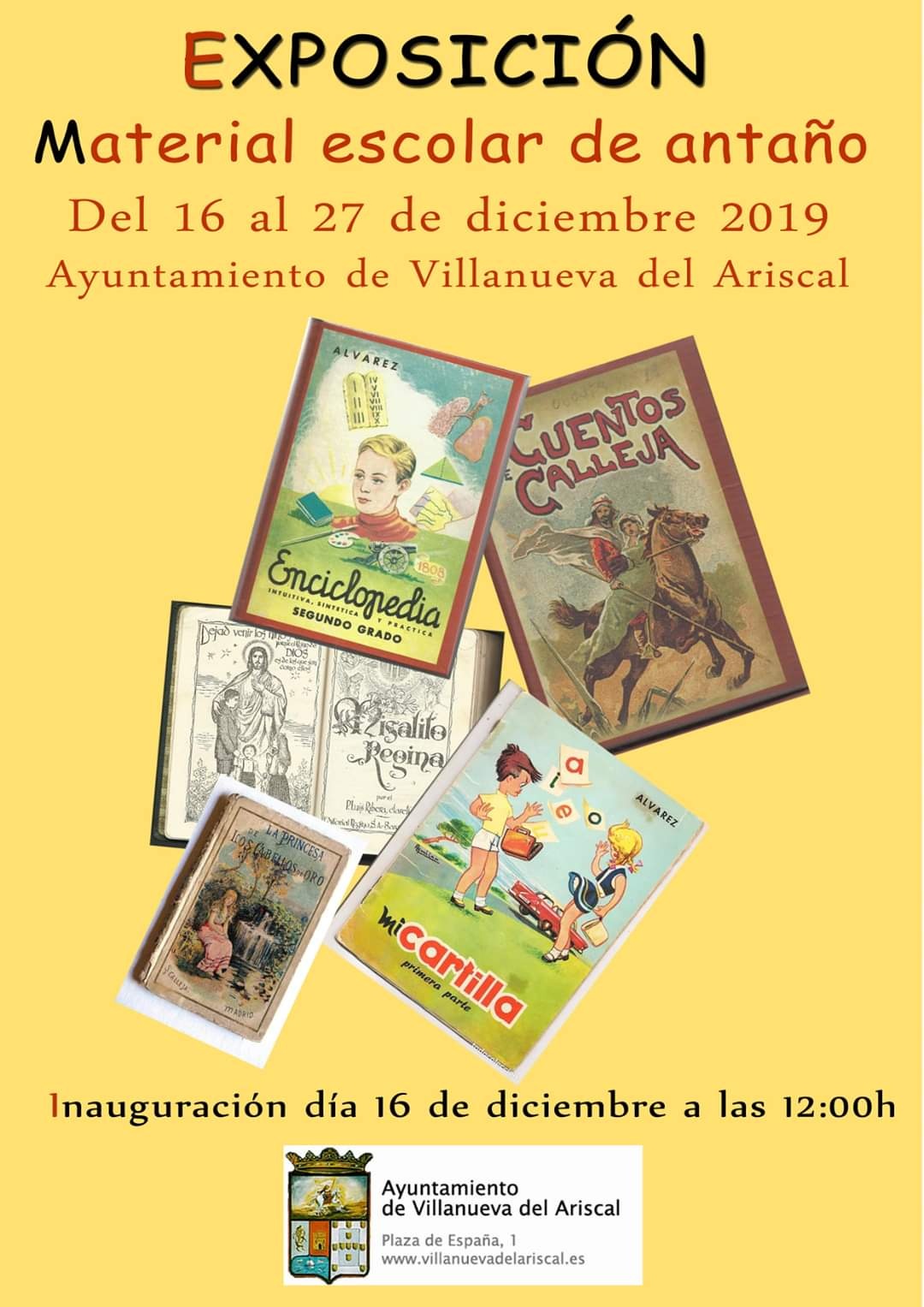El próximo lunes 16 de diciembre de 2019 a las 12:00h en el Ayuntamiento se inaugura la exposición "Material escolar de antaño". Libros y cuadernos, los más antiguos, de hace más de dos siglos, que se usaron en las escuelas de entonces. También se van a exponer copias de diplomas cuyos originales se encuentran en el Archivo Histórico Municipal. Son del año 1908 al 1912, y si hay alguno de un antepasado de tu familia, te lo regalamos al finalizar la exposición. Podrá visitarse hasta el 27 de diciembre.