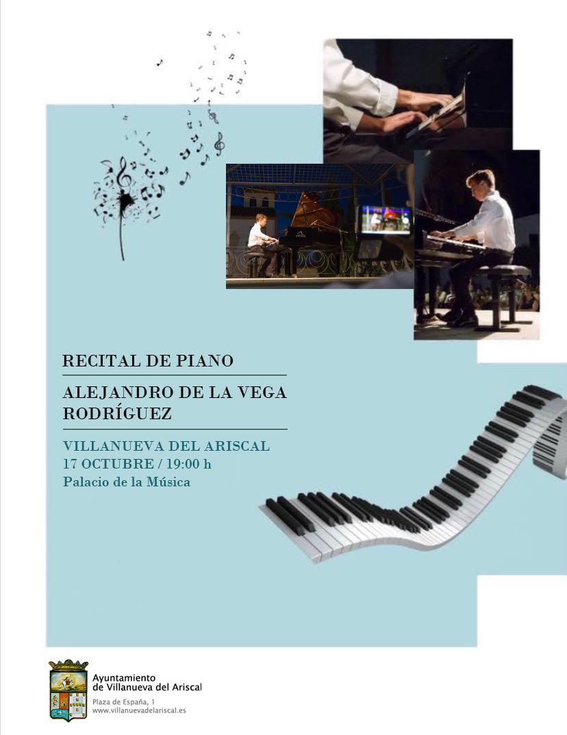 Dentro del XVII Otoño Cultural, el próximo domingo 17 de octubre, a las 19:00 h en el Palacio de la Música, podremos disfrutar del recital de piano de nuestro joven paisano Alejandro de la Vega Rodríguez.