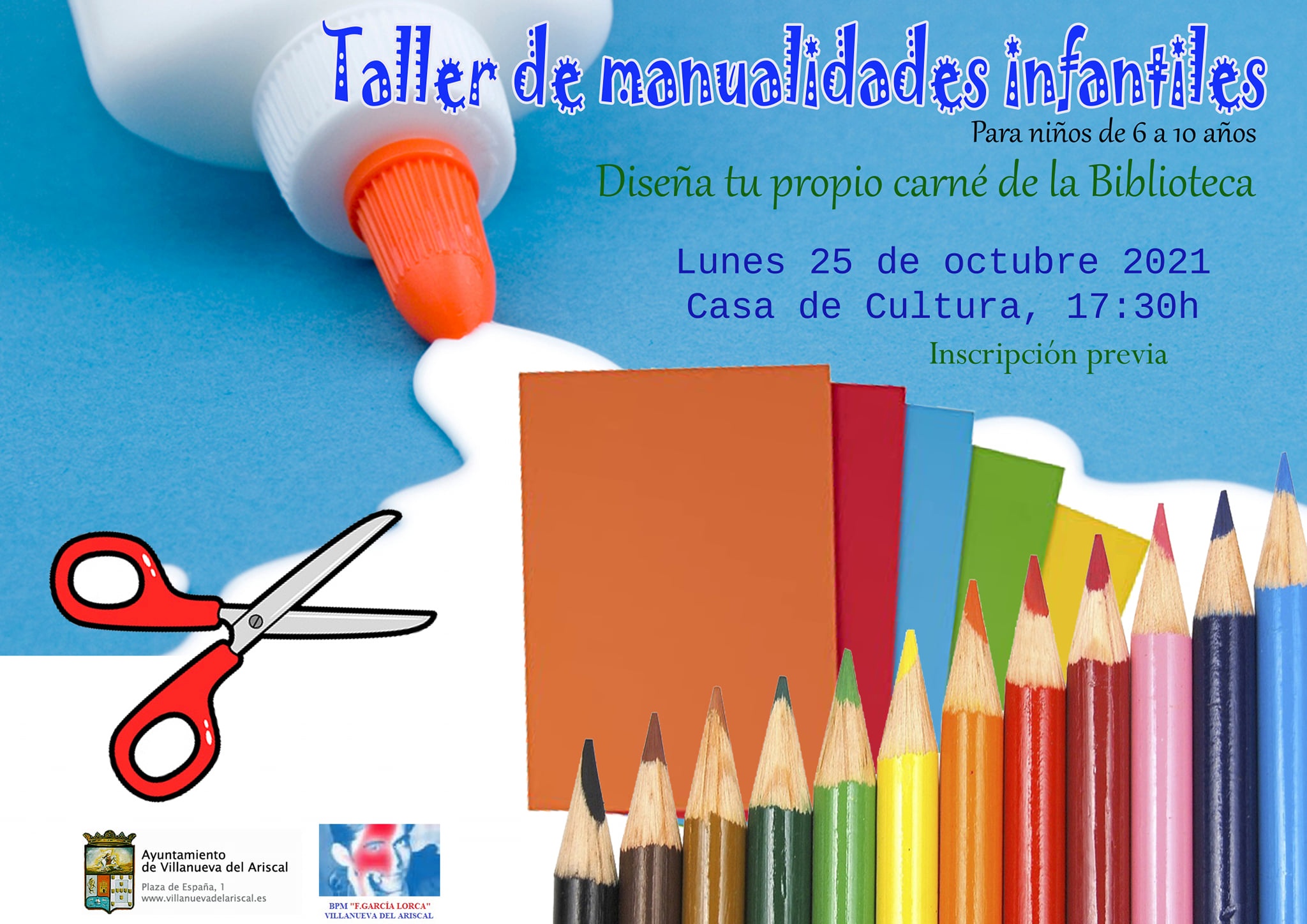 El próximo lunes 25 de octubre a las 17:30h, se llevará a cabo un taller de manualidades en la Casa de Cultura. Diseñaremos nuestro propio carné de la Biblioteca. Esta actividad está enmarcada dentro de las actividades organizadas con motivo del Día Internacional de las Bibliotecas y es una actividad dirigida a niños de 6 a 10 años. Inscripciones en la Casa de Cultura.