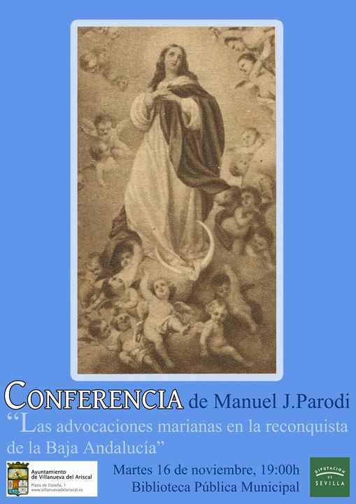 El próximo martes 16 de noviembre a las 19:00h en la Biblioteca Pública Municipal tendrá lugar la conferencia "Advocaciones marianas en la reconquista de la Baja Andalucía", a cargo de Manuel J. Parodi, historiador, arqueólogo e investigador. Esta confrencia se enmarca dentro de la línea de conmemoración del VIII Centenario del nacimiento de Alfonso X.