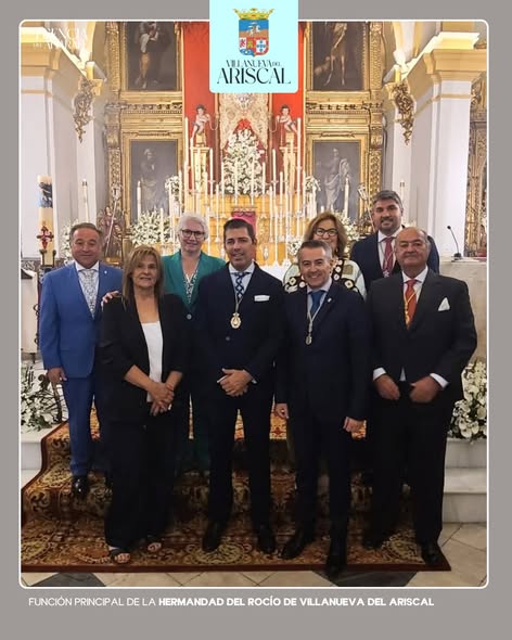 El alcalde de Villanueva del Ariscal, Curro García, junto a miembros de la Corporación Municipal, han acompañado a la Hermandad del Rocío de Villanueva del Ariscal durante la celebración de su Función Principal de Instituto.