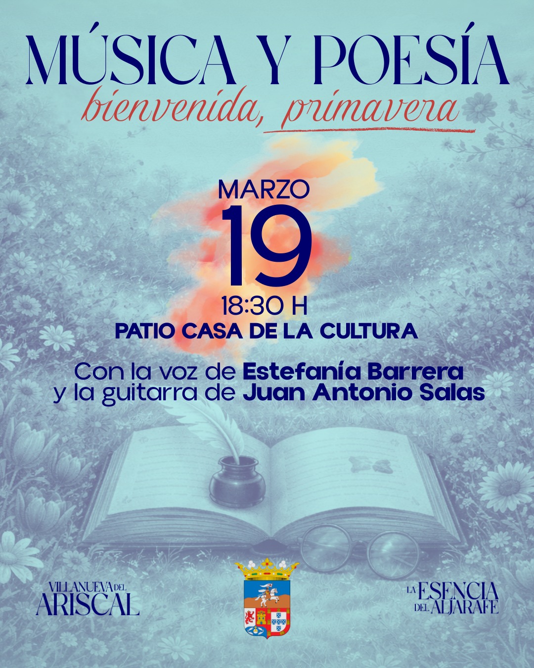 Estamos a un paso de entrar en la primavera, ¡y desde el Ayuntamiento de Villanueva del Ariscal queremos celebrarlo como se merece! Por ese motivo, este jueves 19 de marzo, a partir de las 18:30 horas, el patio interior de la Casa de la Cultura acogerá un encuentro en el que combinaremos poesía y música para celebrar la llegada de la nueva estación.