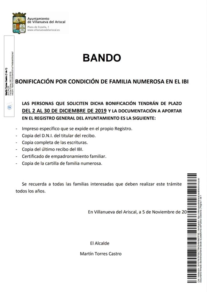 INFORMACIÓN DE INTERÉS: BONIFICACIÓN POR CONDICIÓN DE FAMILIA NUMEROSA EN EL IBI