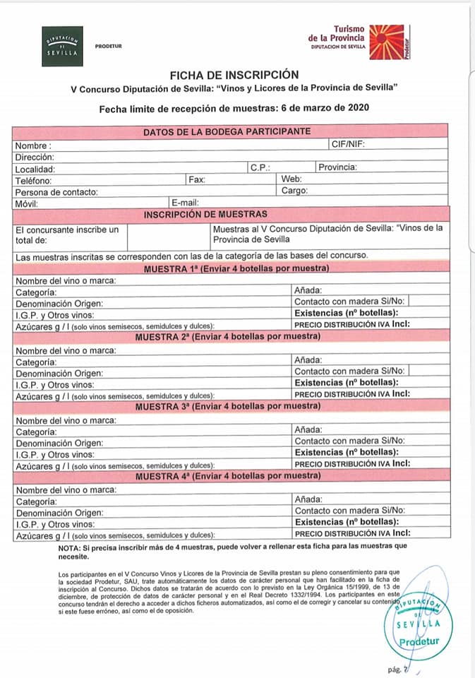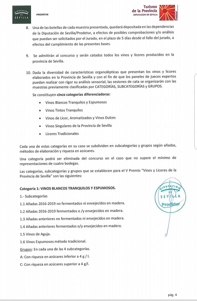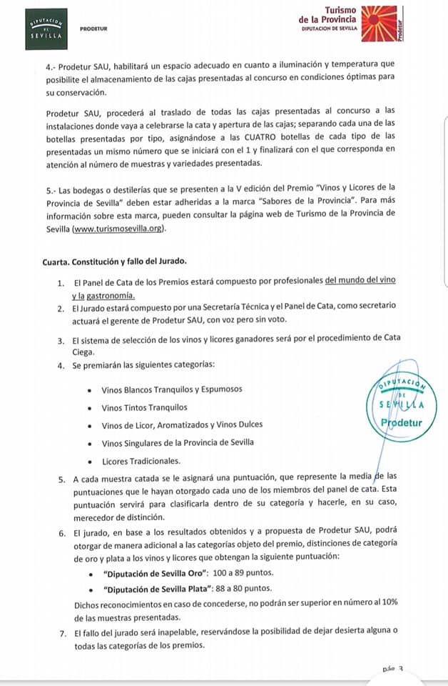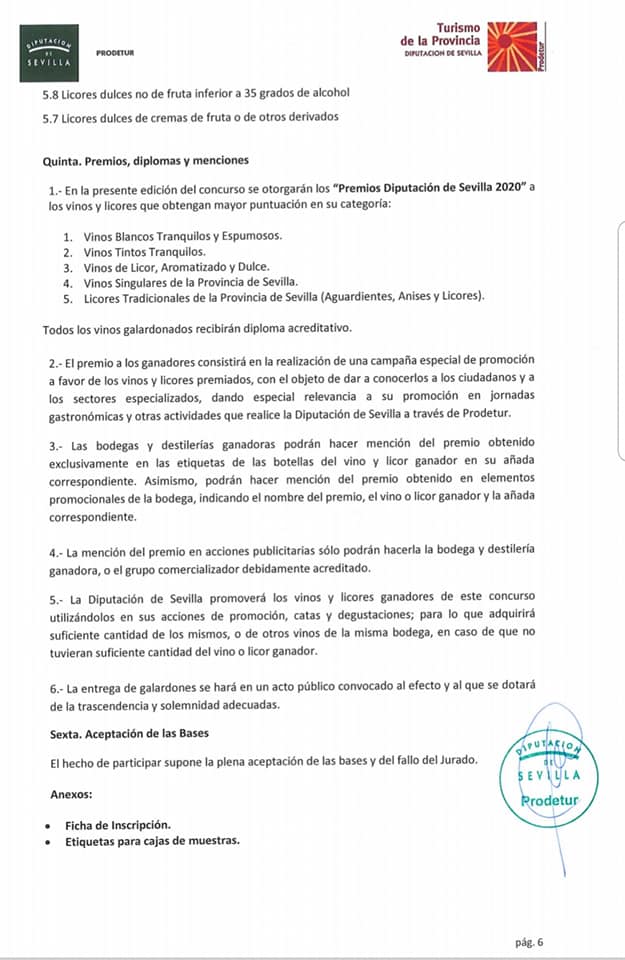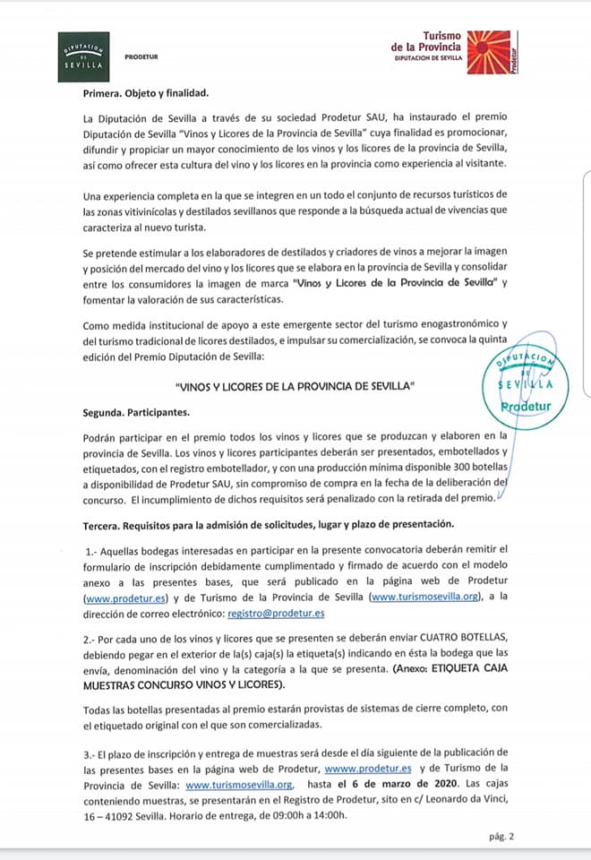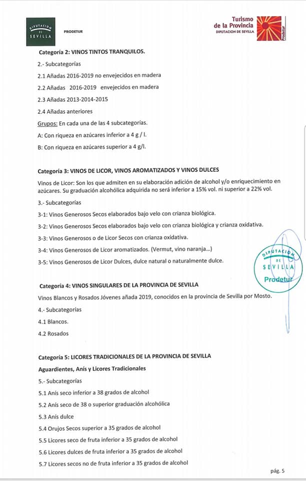 INFORMACIÓN DE INTERÉS: V EDICIÓN DEL CONCURSO DE LA DIPUTACIÓN DE SEVILLA "VINOS Y LICORES DE LA PROVINCIA DE SEVILLA"