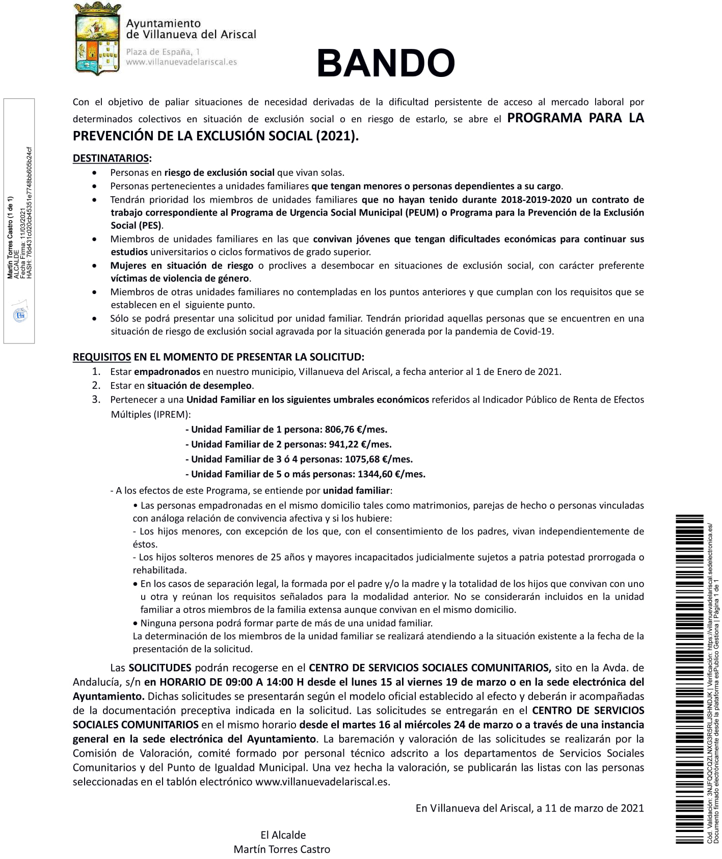 Si necesitas trabajar, aquí os dejamos el Bando con toda la información referente al nuevo Programa para la Prevención de la Exclusión Social. En el mismo encontrarás a quiénes va dirigido el programa, los requisitos a cumplir y los plazos para solicitarlo.