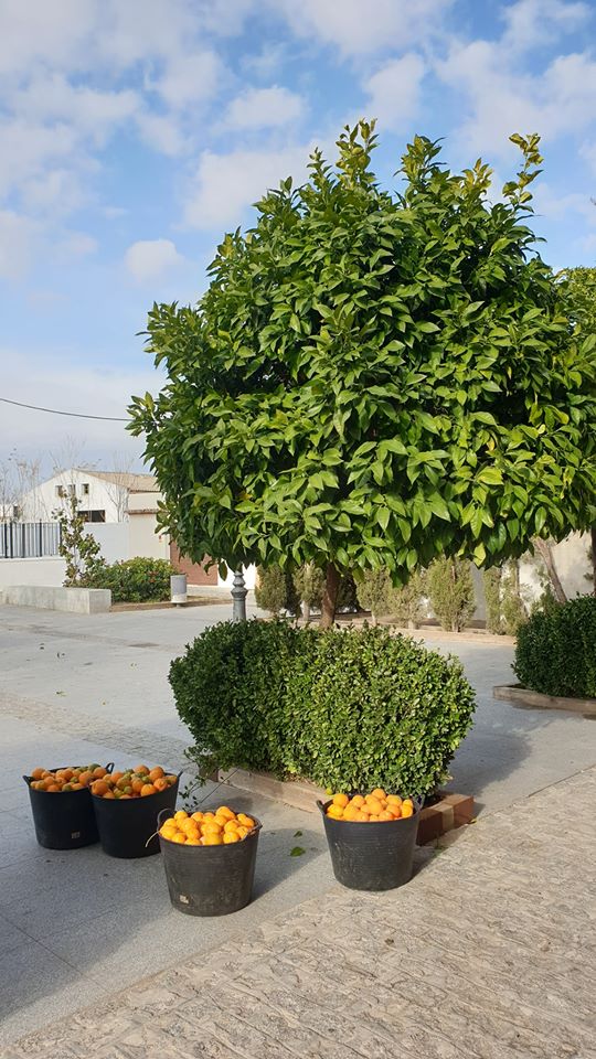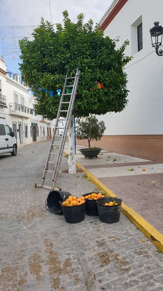 En Villanueva del Ariscal, hoy se recoge la naranja amarga de nuestras calles. La previsión del Ayuntamiento en esta tarea, ayudará a mantener nuestras calles limpias, evitando la caída al suelo y los resbalones.