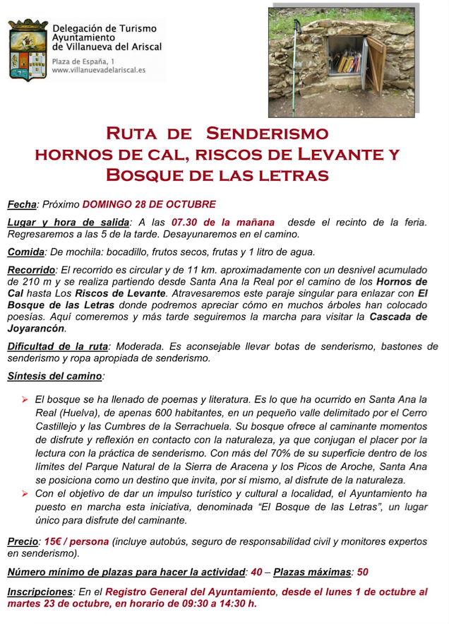 La Delegación de Turismo de Villanueva del Ariscal está organizando una ruta de senderismo que se