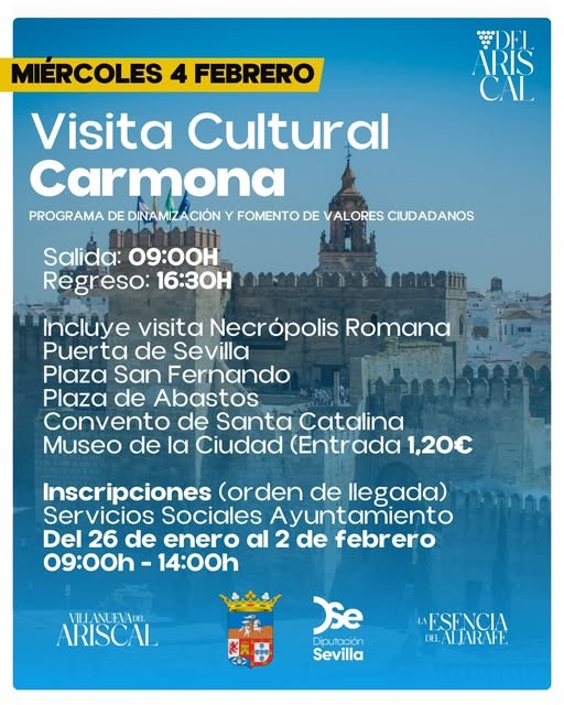 El Ayuntamiento de Villanueva del Ariscal organiza una excursión cultural a Carmona dentro del programa ‘Conoce tu Entorno’
