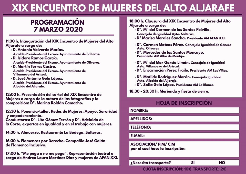 INSCRIPCIONES hasta el 28 de Febrero. PÁSATE POR EL ÁREA DE IGUALDAD (Avda. de Andalucia, S/N).