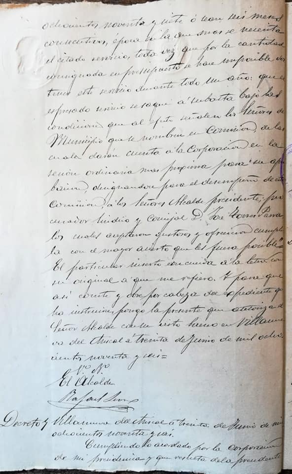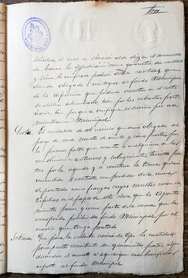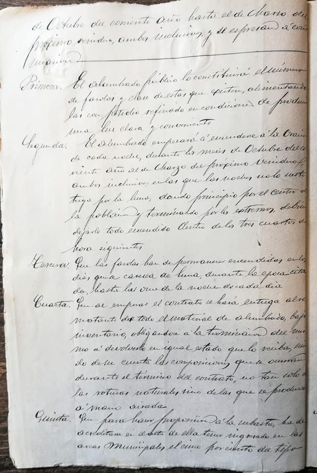 Así hasta nueve puntos tiene el documento, todos muy interesantes para esta novedosa hazaña de la luz eléctrica en las farolas de alumbrado público de nuestro pueblo.