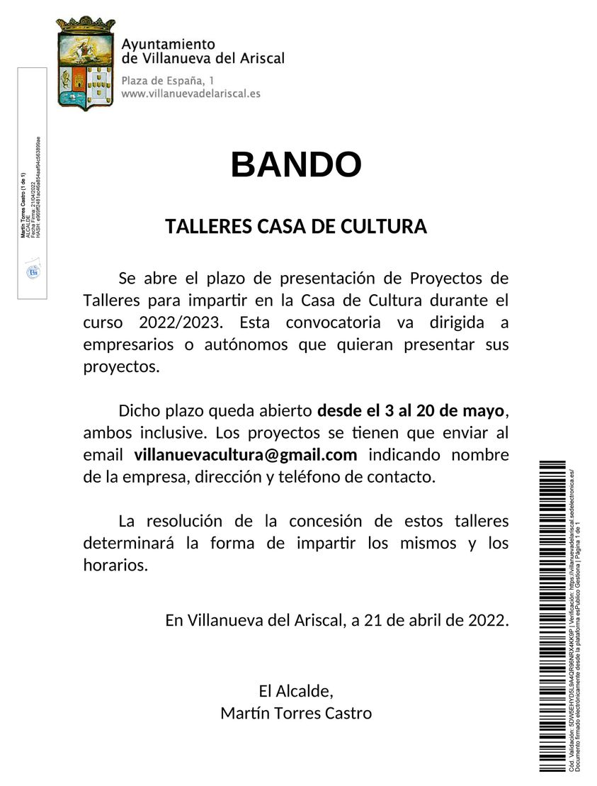 Abrimos el plazo de presentación de proyectos para los TALLERES DE LA CASA DE CULTURA para el próximo curso.