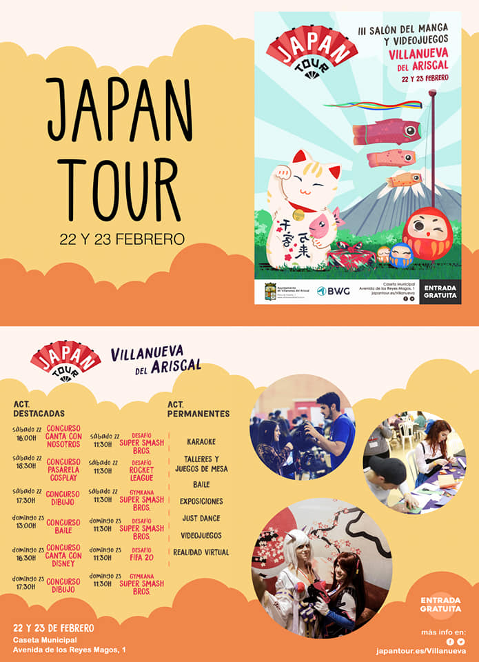 Además, el sábado 22 y el domingo 23, celebraremos el JAPAN TOUR, un encuentro de Manga y Videojuegos para niños y jóvenes.