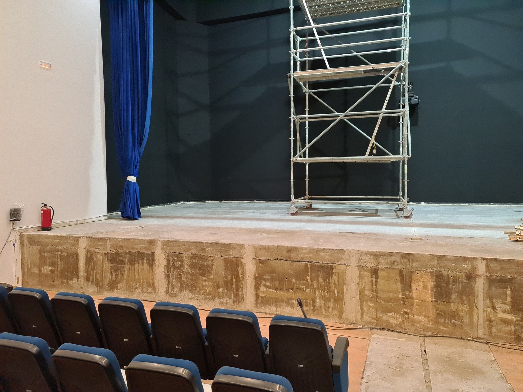 Ello ha hecho que ahora, cuando lo hemos querido finalizar (dotando de climatización, iluminación, sonido, cortinas, proyector de cine y demás), otros elementos como el escenario o la entrada, estén en condiciones pésimas.