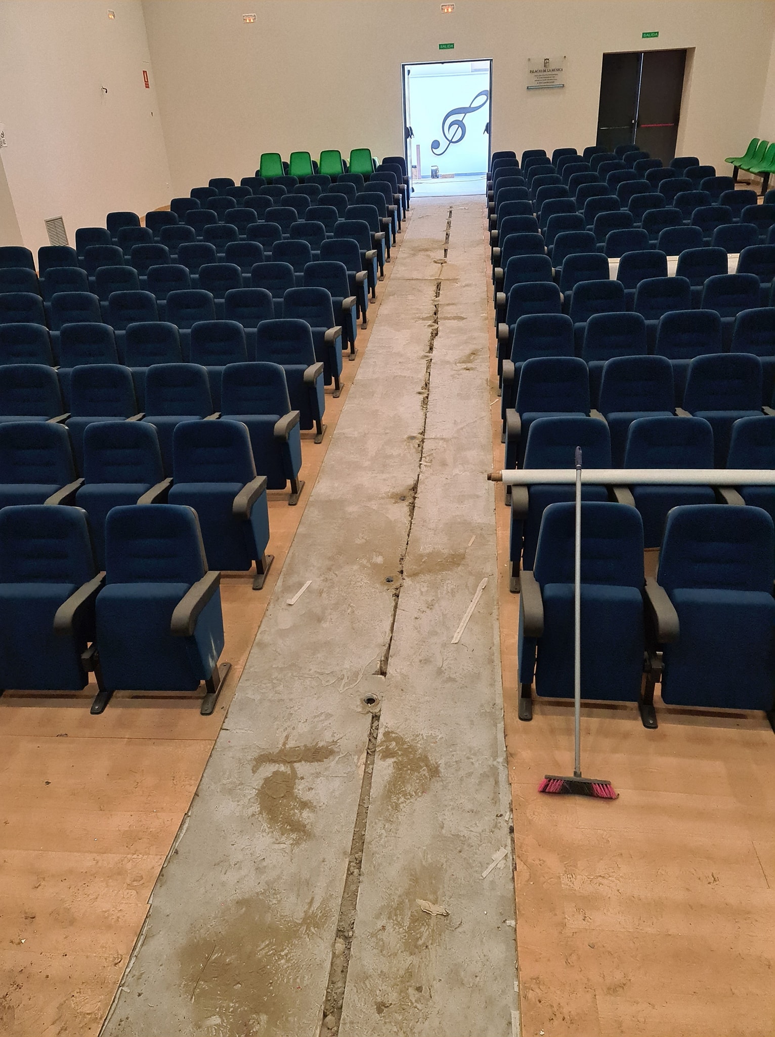 Se ha tenido que sustituir parte del suelo, y todo el escenario, además de arreglar humedades por filtraciones en la cubierta y sustituir parte de las instalaciones.