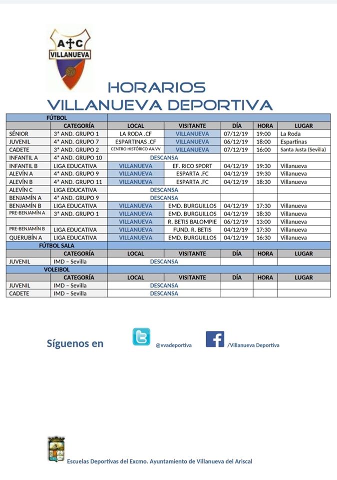 ➡️ Horarios de ésta semana de nuestros equipos de Fútbol ⚽