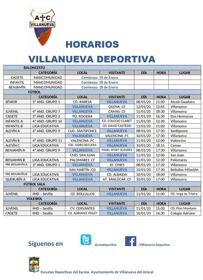 Horarios de ésta semana de nuestros equipos de Fútbol, Fútbol Sala y Voley.