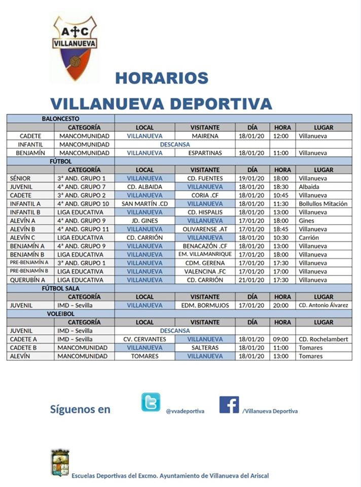 ➡️ Horarios de ésta semana de nuestros equipos de Baloncesto, Fútbol, Fútbol Sala y Voley. Éste finde debutan en nuestro Pabellón los grupos de Baloncesto, y también en Tomares los grupos de Voley de Mancomunidad. Suerte para tod@s !!