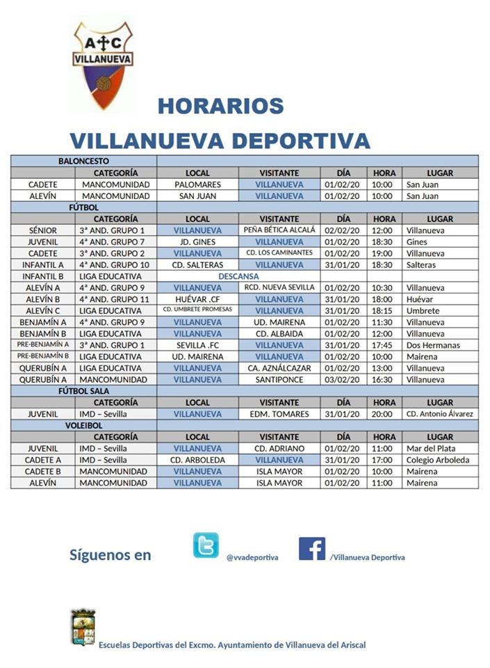 ➡️ Horarios de ésta semana de nuestros equipos de Baloncesto, Fútbol, Fútbol Sala y Voley.