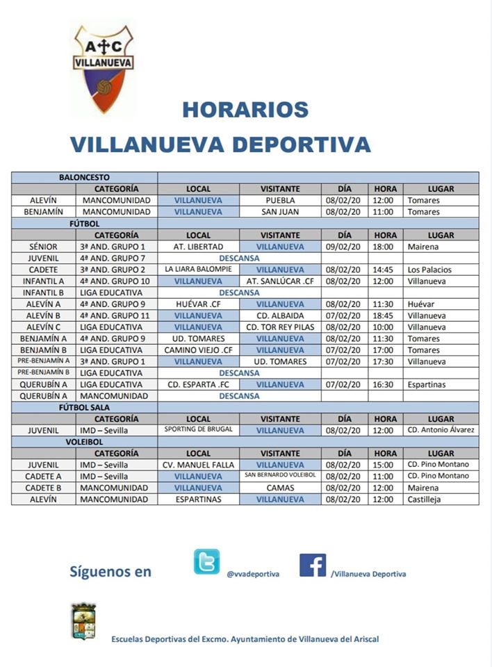 ➡️ Horarios de ésta semana de nuestros equipos de Baloncesto, Fútbol, Fútbol Sala y Voley.