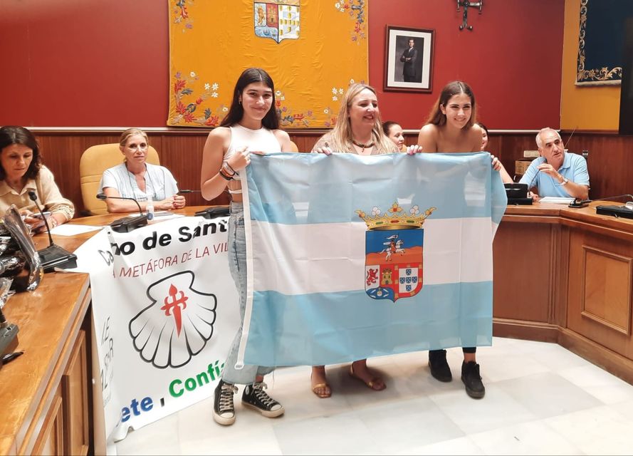 En el acto recibieron de manos la delegada la bandera de nuestro pueblo que les acompañará en su peregrinación y los borlones con el lema "Caminamos juntos", camisetas para el camino a los jóvenes y sudaderas a los acompañantes, e igualmente sellaron sus credenciales.